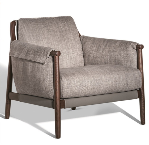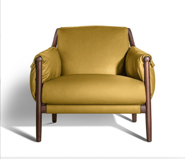 Walnut solid wood Lounge chairs cover with fabric and Microfiber leather Comfortable Armrest Living room sofa chairs