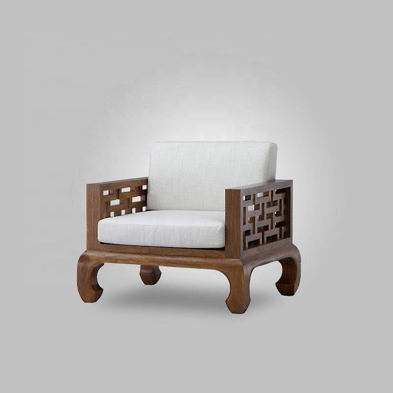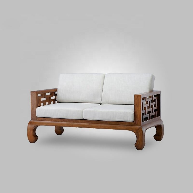 New Chinese furniture New Classical Solid Wood Craved Wood White fabric sofa set living room sofa