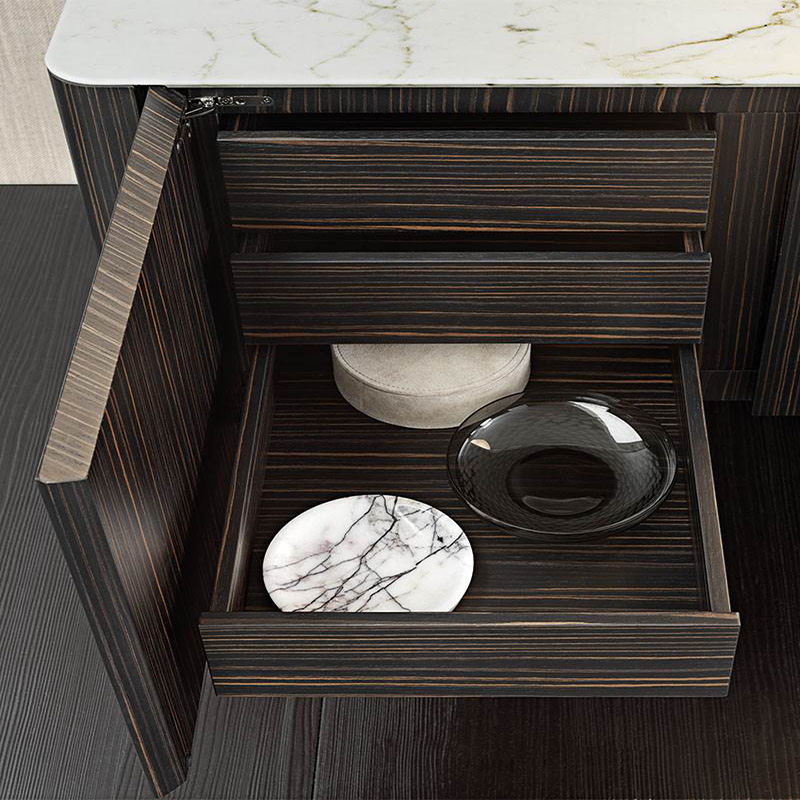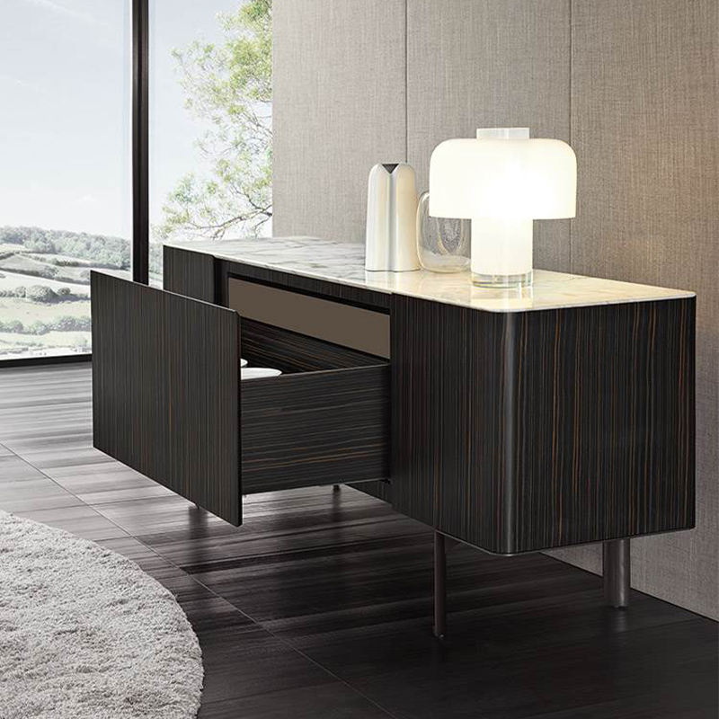 Walnut Veneer Dinning Room TV stand With Marble Top Modern Living Room Media Console Table Home Furniture
