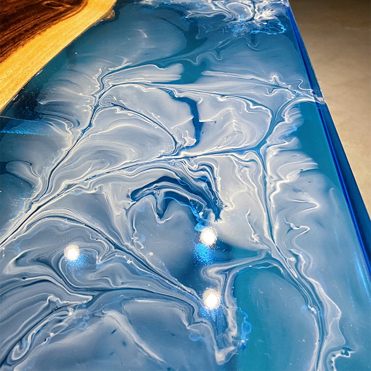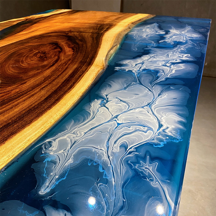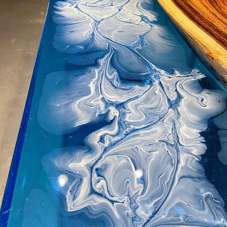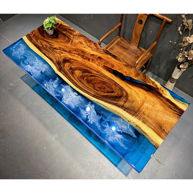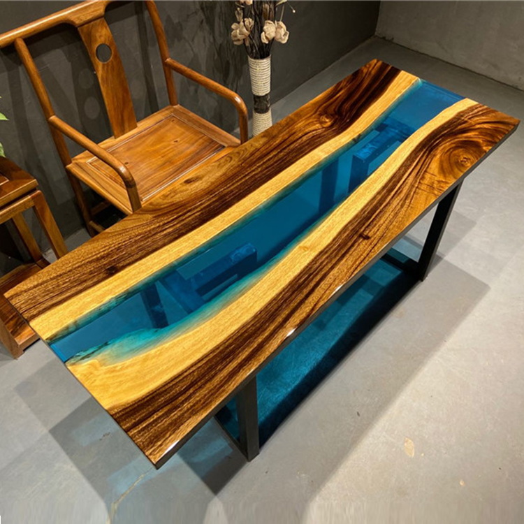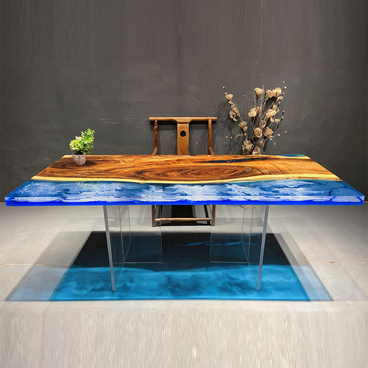Epoxy Resin Dining Table top with High Quality 304 Stainless Steel Leg River Restaurant Room Furniture