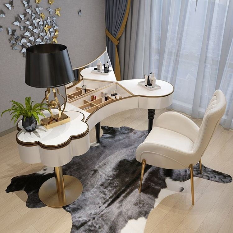 European style luxury dressing table with mirror Vanity white or gold study desk hot sale bedroom furniture