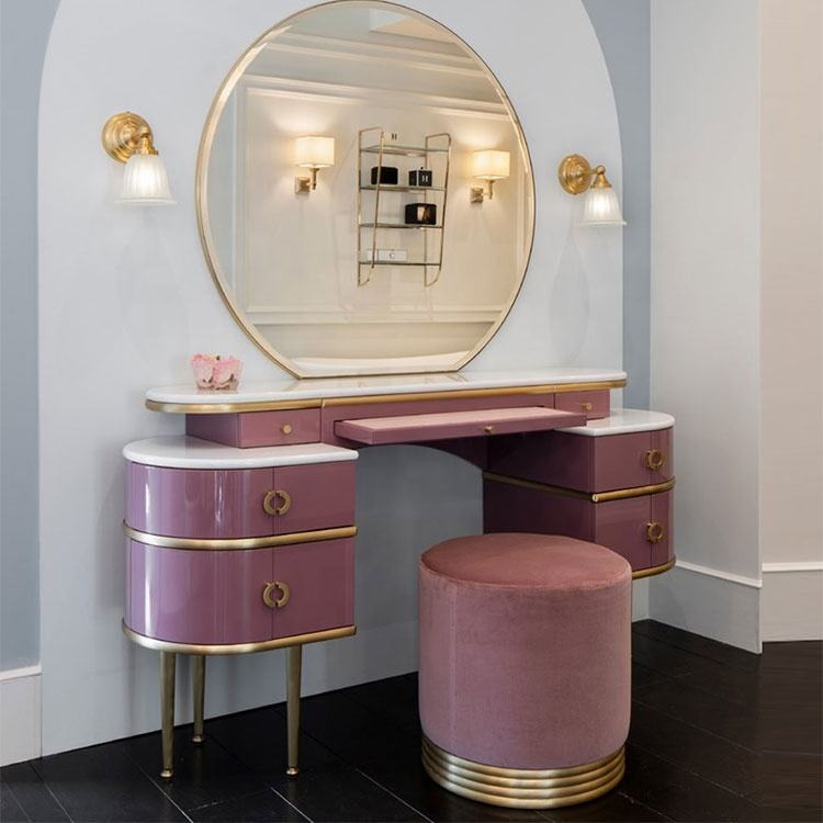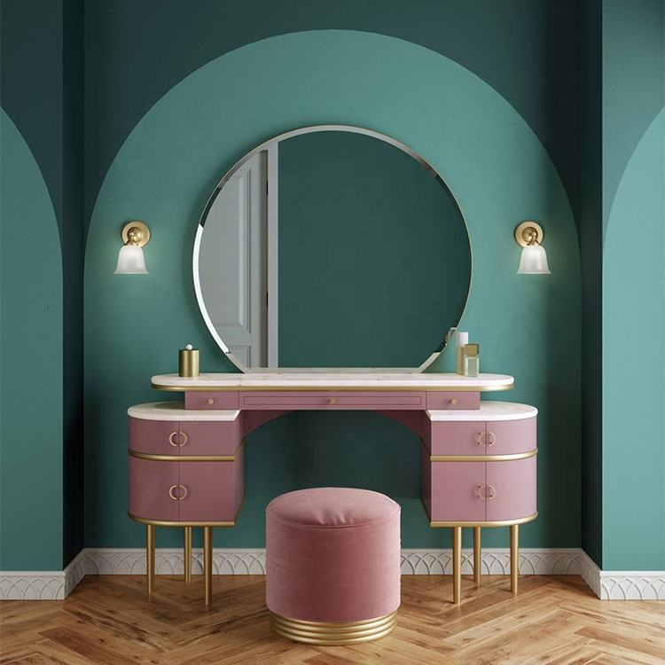 Kids bedroom dressing table with mirror and ottoman factory wholesale PU leather or Fabric bedroom table
