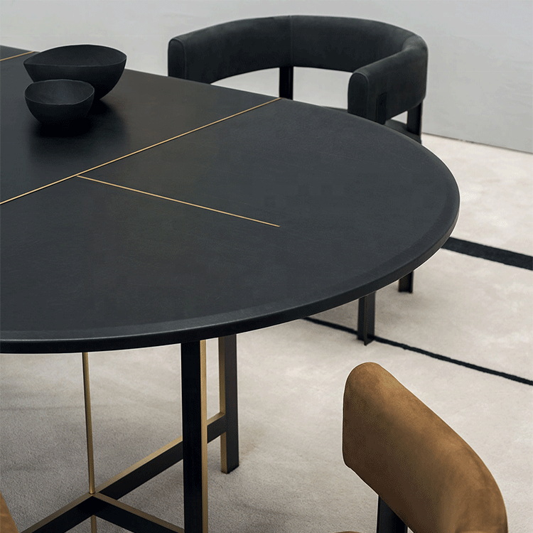 dining table in stainless steel and marble leather furniture luxury for dining room , restaurant,hotel , club