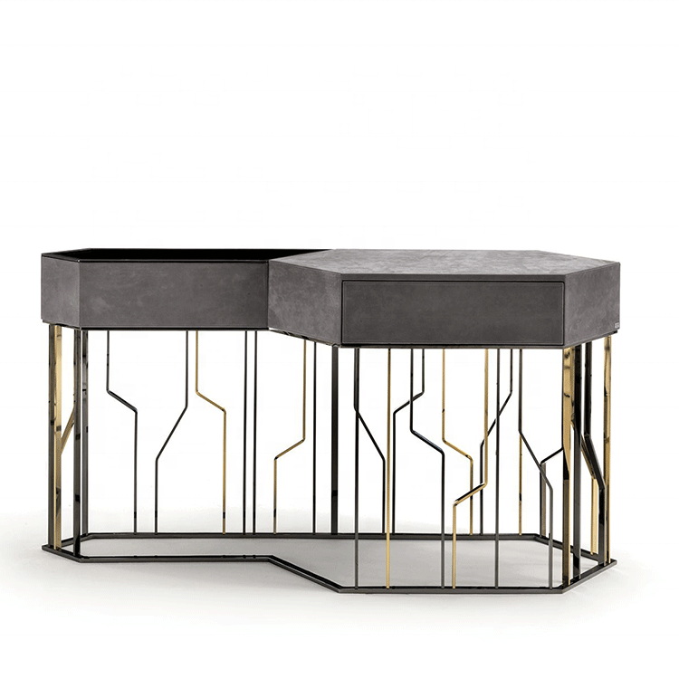 Light luxury contemporary style side table marble stainless steel leather console table with storage space