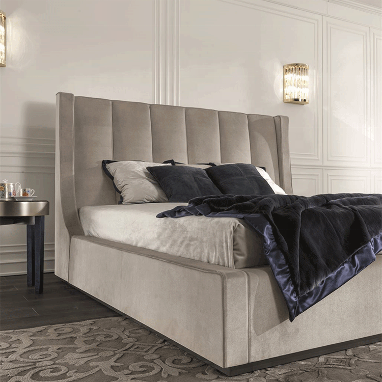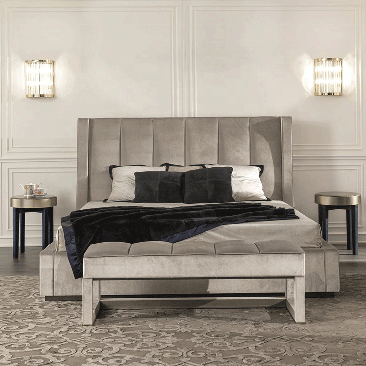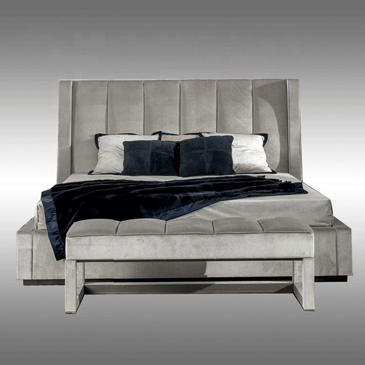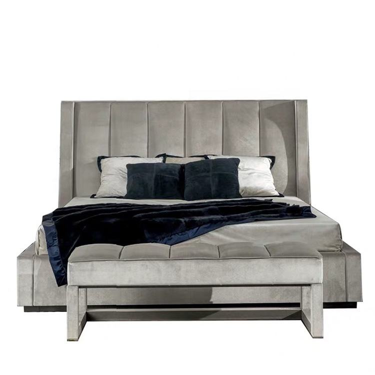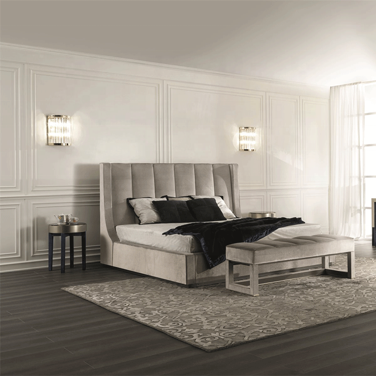 hotel apartment bed room furniture double bed wooden fabric/leather OEM or ODM design Modern Style Nodic Solid Wood Bed