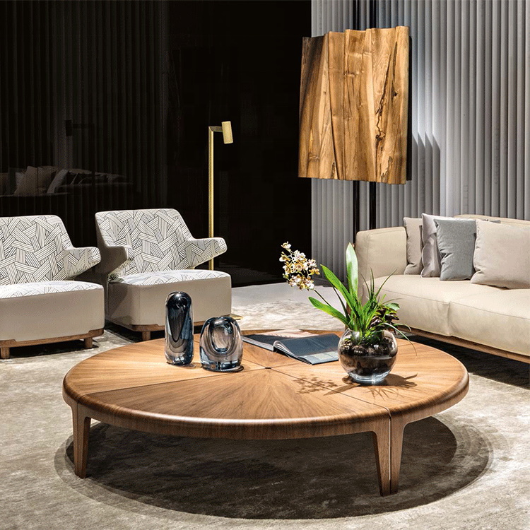 Big round coffee table in solid wood Chinese style modern house decoration living room centre coffee table