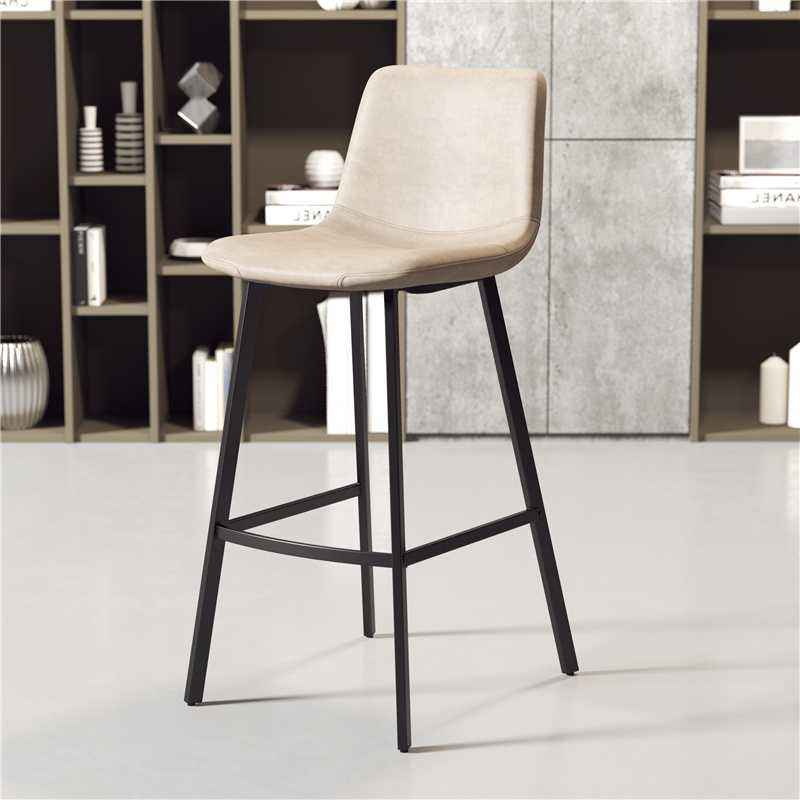 Contemporary Bar furniture bar stool black matte metal leg high-density sponge with Microfiber leather