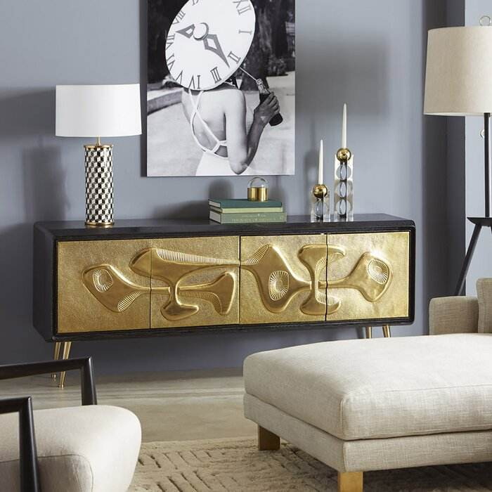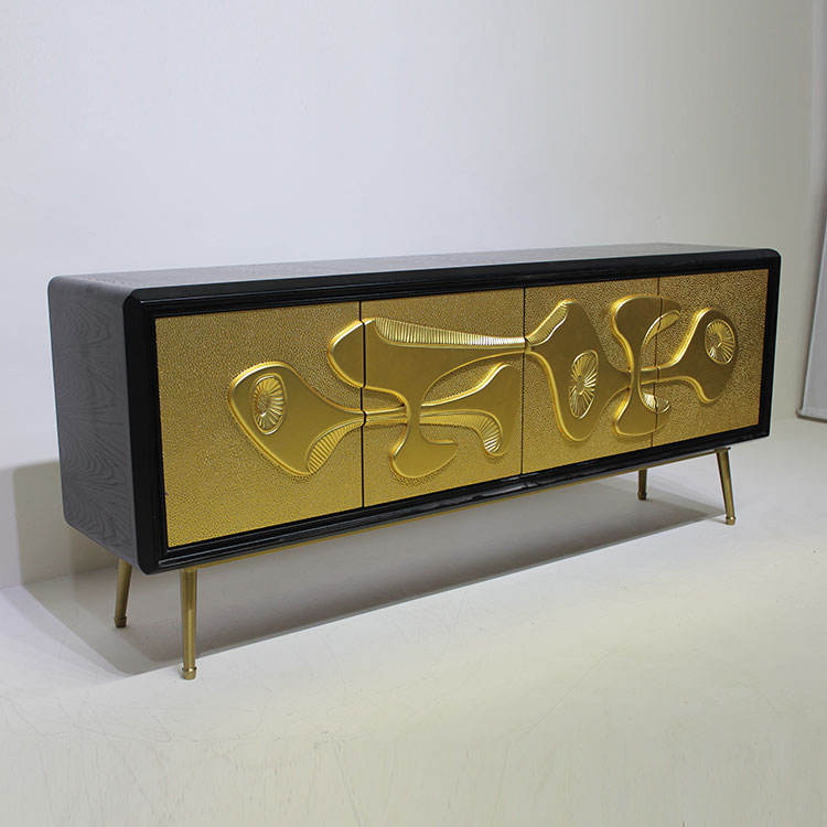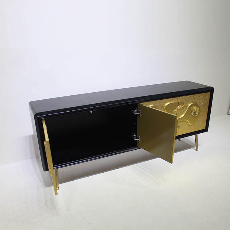 Black Decoration Cabinet Made From Oak Solid Wood And Gold Stainless Steel With Storage TV Stand Living Room Side Cabinet