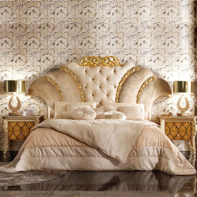 Royal luxury bedroom furniture princess bedroom furniture double bed with tufted headboard wooden european design