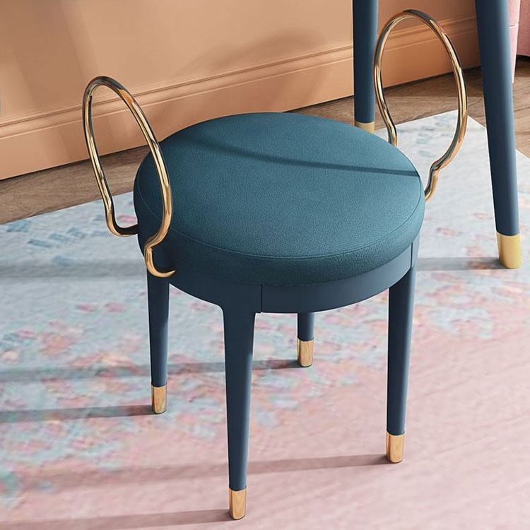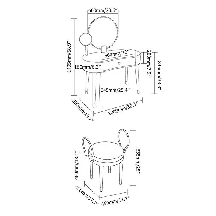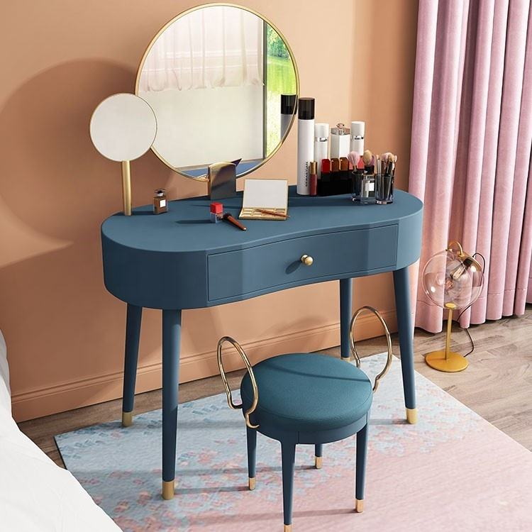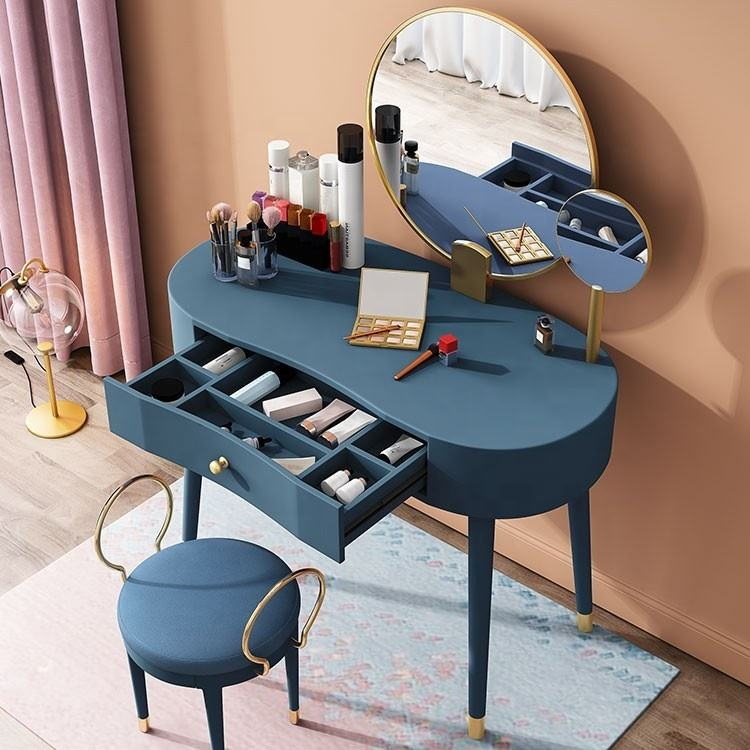 Elegant Makeup Vanity Table Set 2 Mirrors with Drawer & Stool Brushed Gold White For Girls room