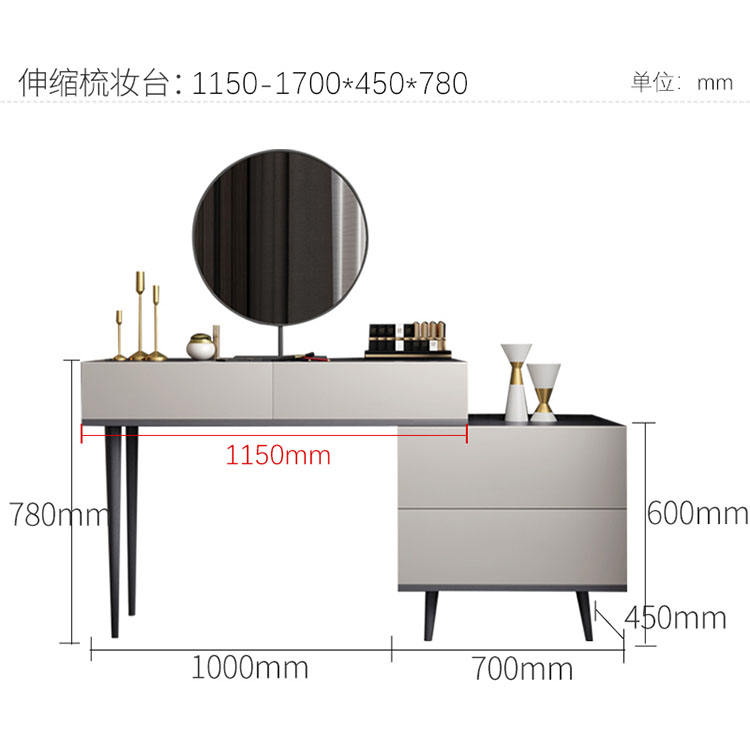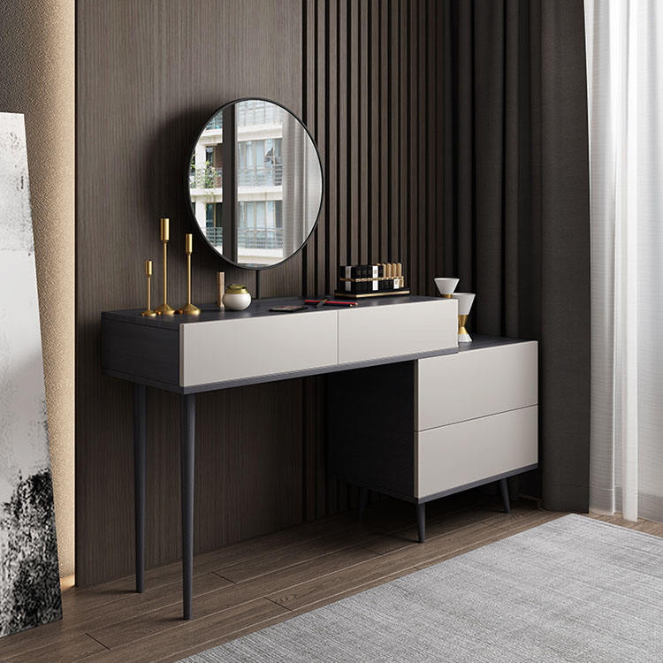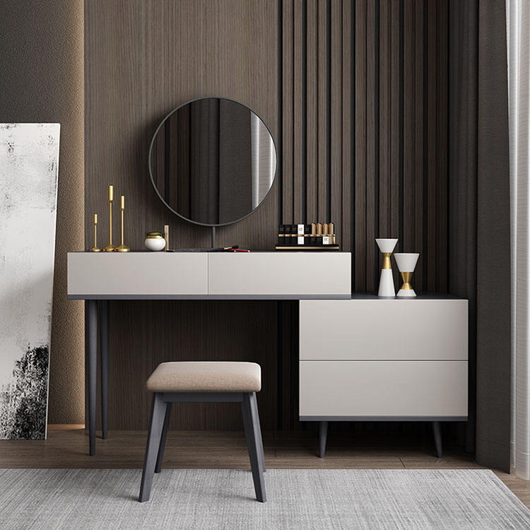 Gray Solid wood Makeup table with drawers round mirror and stool Bedroom Dressing table For bedroom hotel use