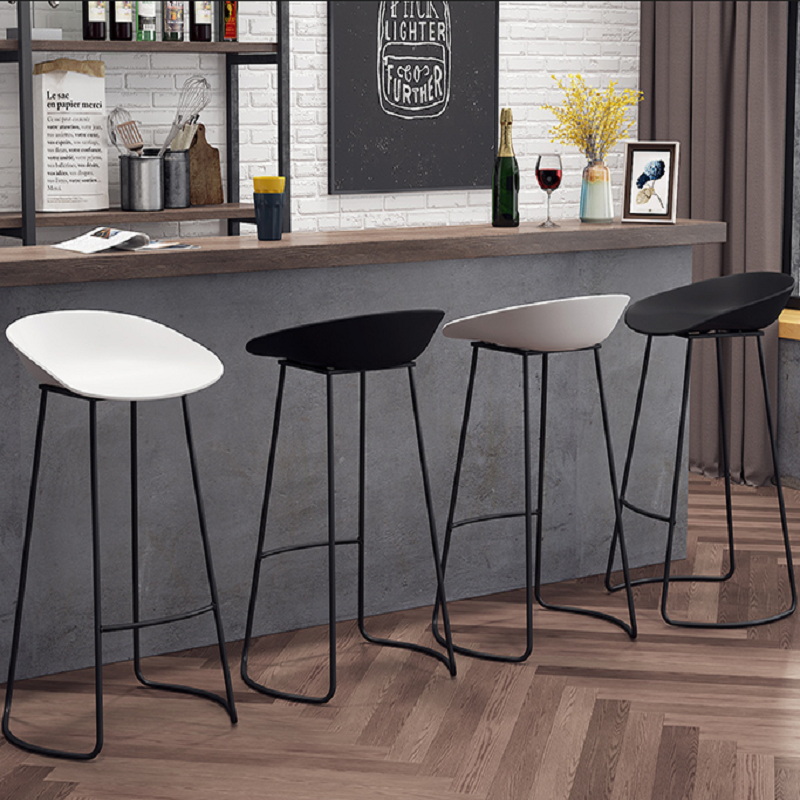 Minimalist Black metal Bar Stools set of 2 Matte white Bar chairs for home kitchen hotel bar counter