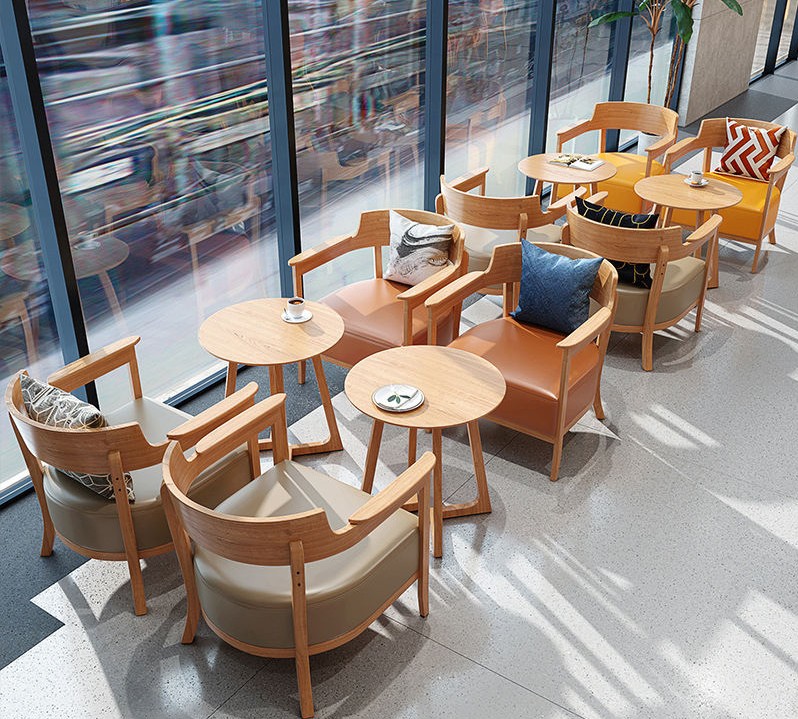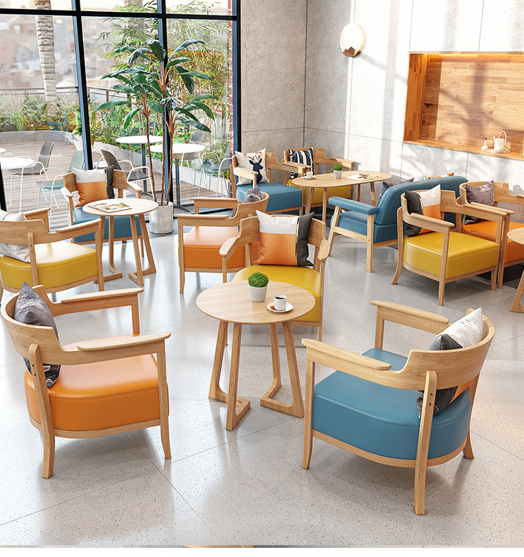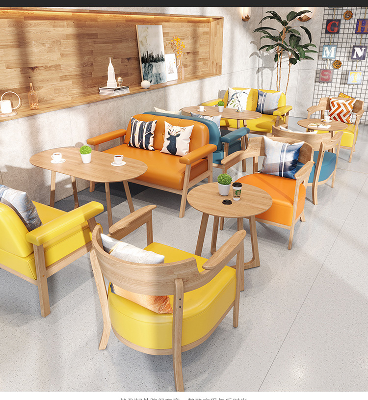 Tea shop table and chair combination restaurant baking shop book bar simple leisure negotiation wood double sofa