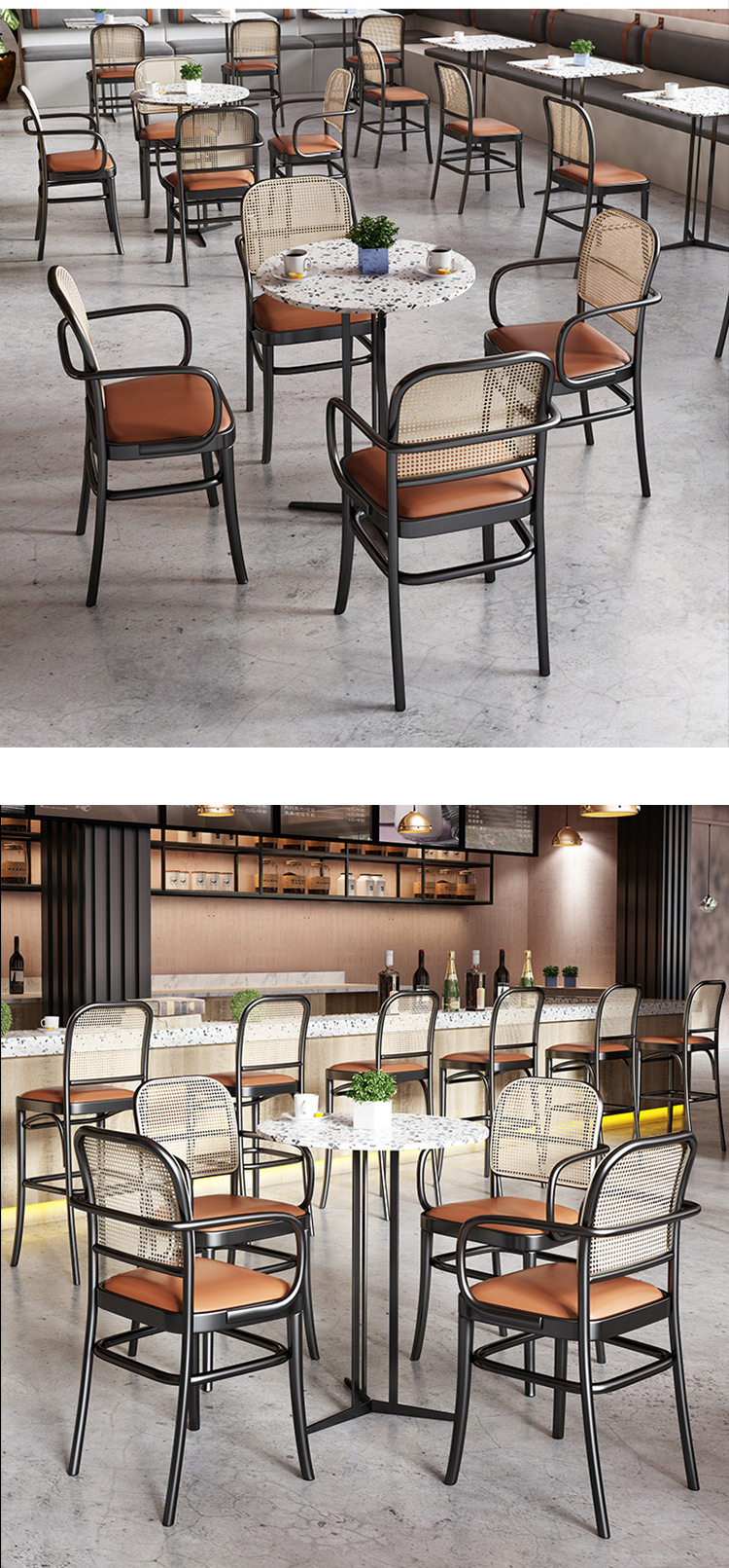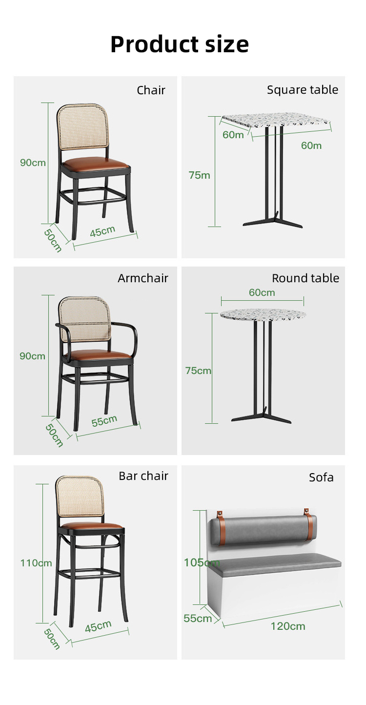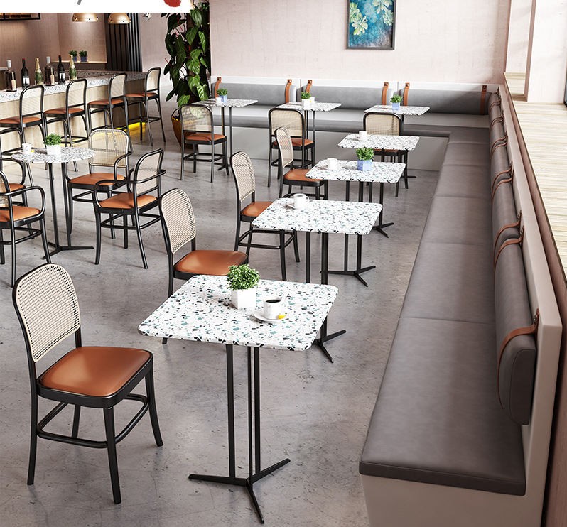 Customized New Design Woven Rattan Chair And Sofa Terrazzo Table Restaurant Cafe Sets