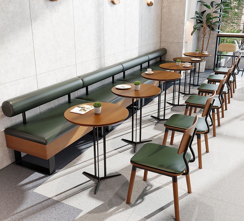 Retro Dinner Tables Chairs Booth Seating Banquette Cafe Furniture Set Leather Restaurant Bench