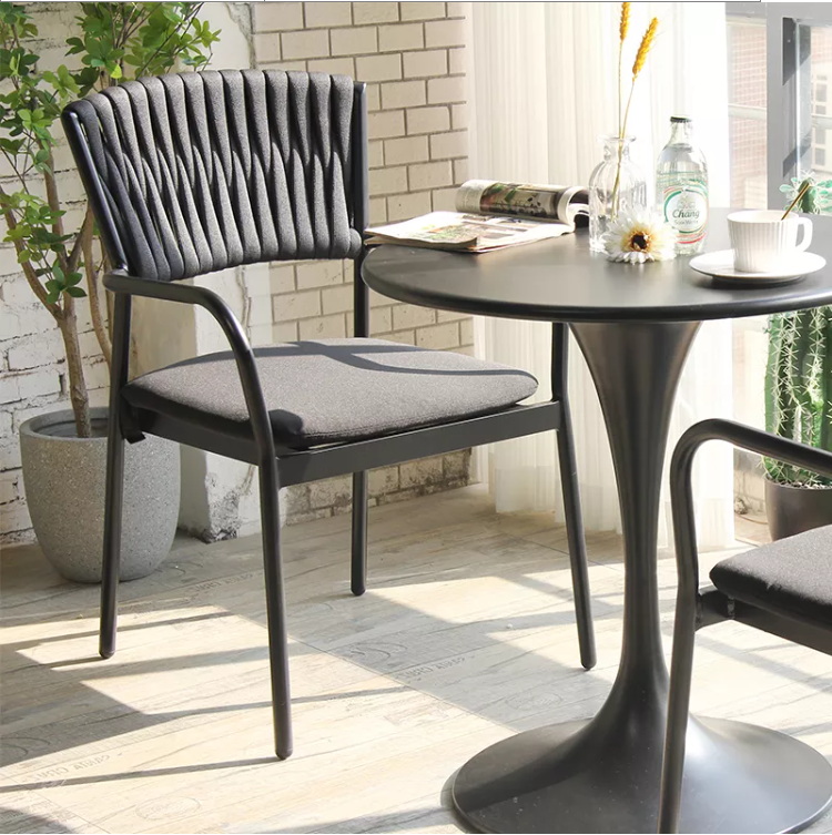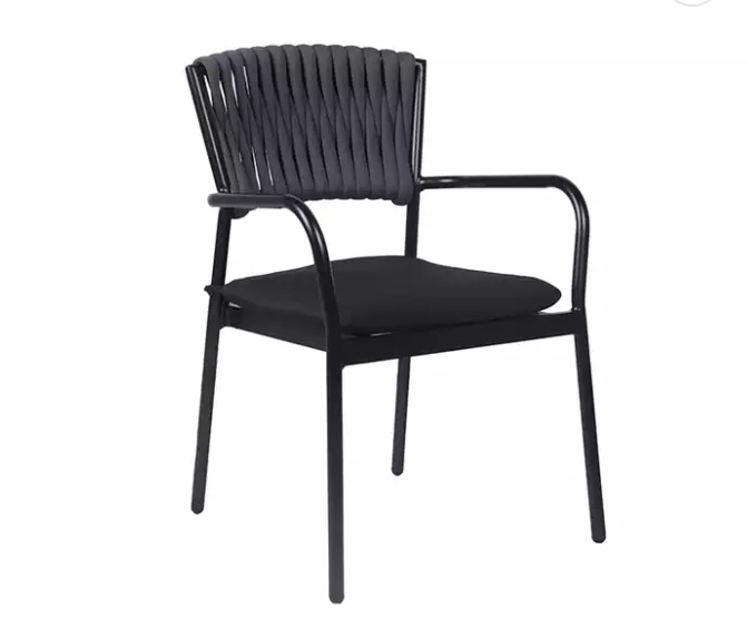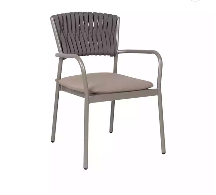 Latest Design Comfortable Widening Metal Woven Rope Armchair Outdoors Mesh Woven Rattan Restaurant Chair