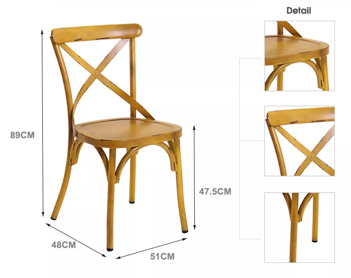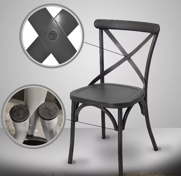 selling products backrest Cross chair Industrial Metal Vintage Dining Chairs Antique Bistro Dining Restaurant stackable Chair