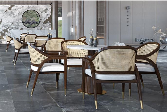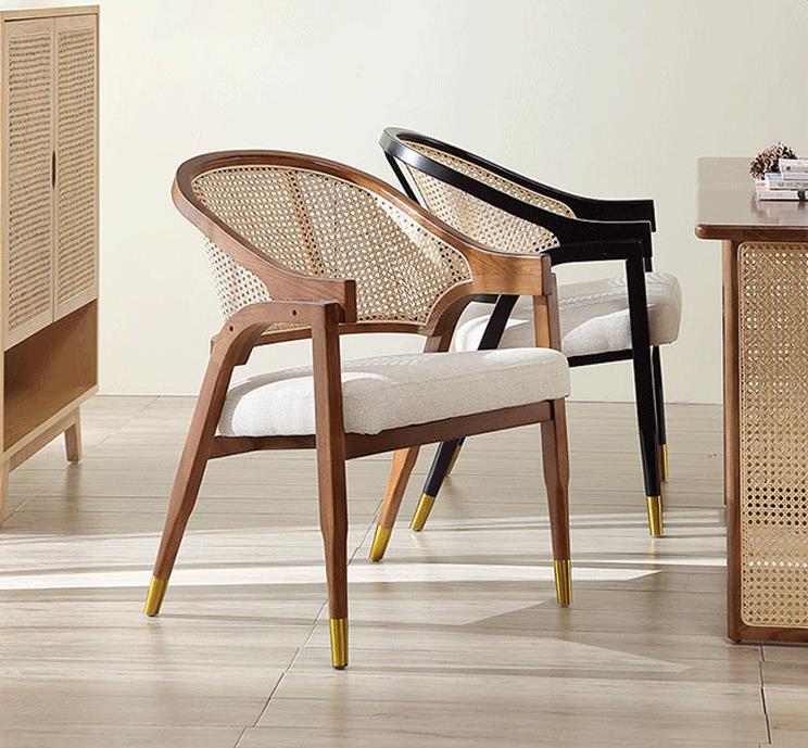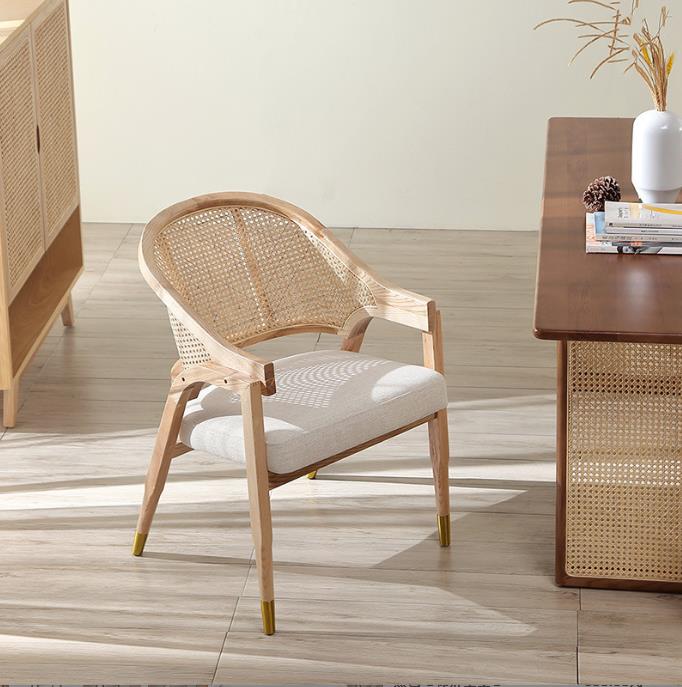 New Design Restaurant solid wood and Nature rattan Cafe Dining Chair