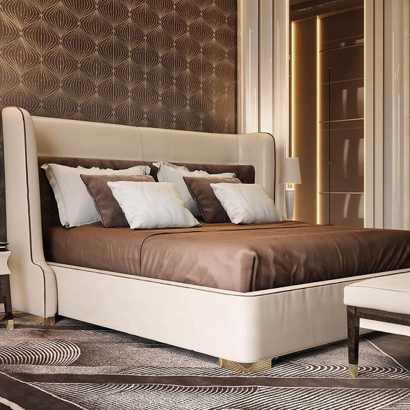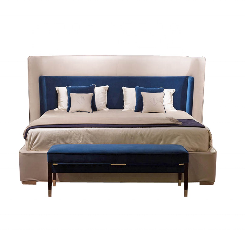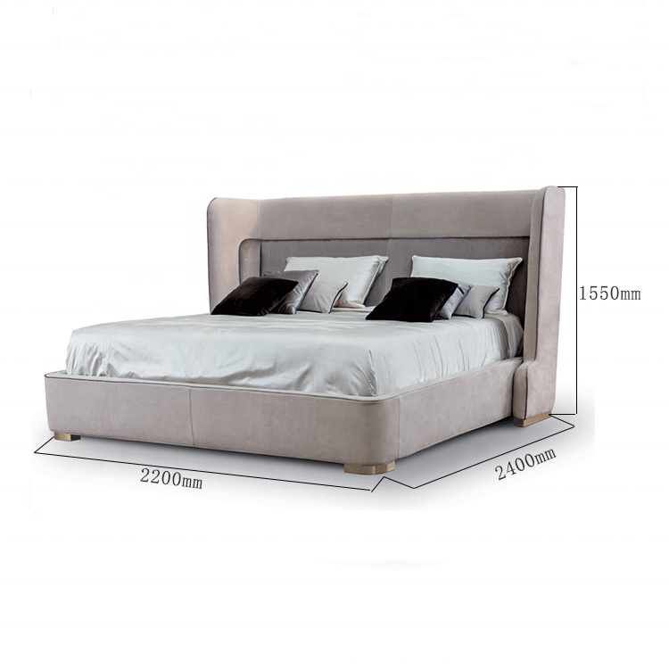 High end Customize design bedroom furniture simple solid wood double bed post modernity leather king size wedding bed