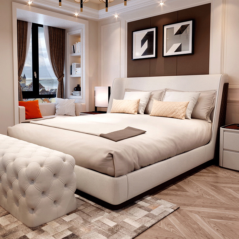 Comfortable Solid Wooden Frame King Queen Size Bed Latest Double Bed Design bed morden