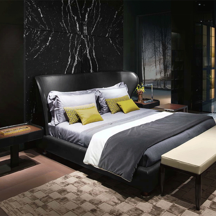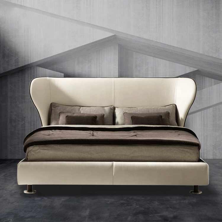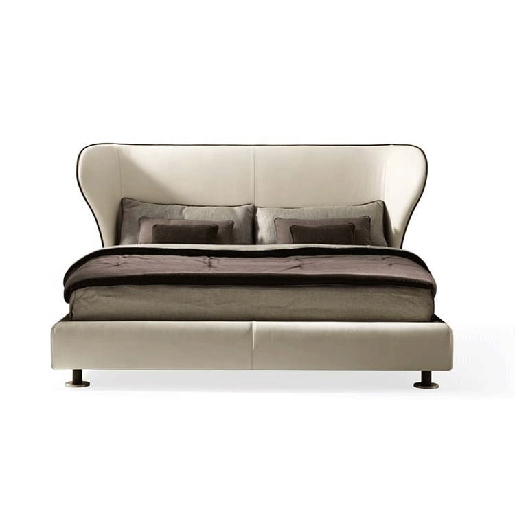 White Leather Headboard luxury classic italian style bed room furniture royal, european, America double bed