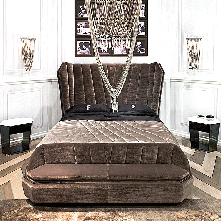 American style Romantic Princess bed in Solid Wood Leather new classical royal luxury 5 star hotel furniture