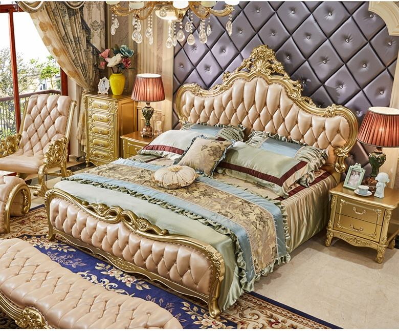 American style Romantic Princess bed in Solid Wood Leather new classical royal luxury 5 star hotel furniture