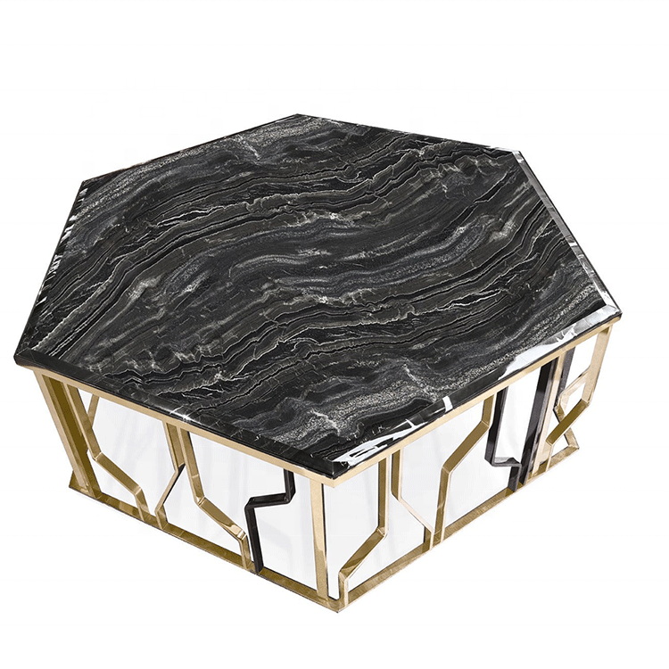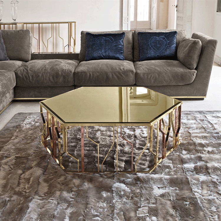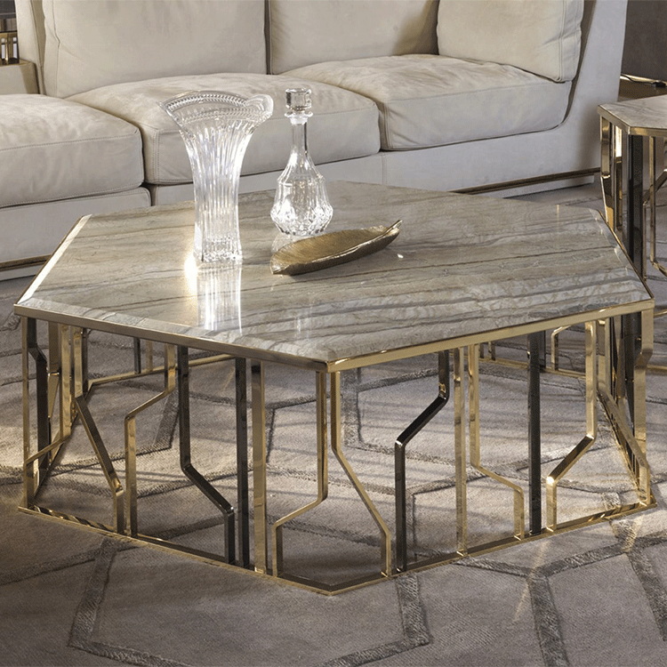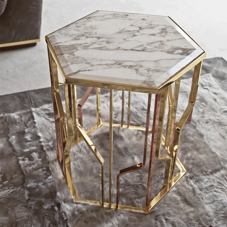light luxury Champaign gold metal frame tea table fashional design coffee tables Milan exhibition new design tables