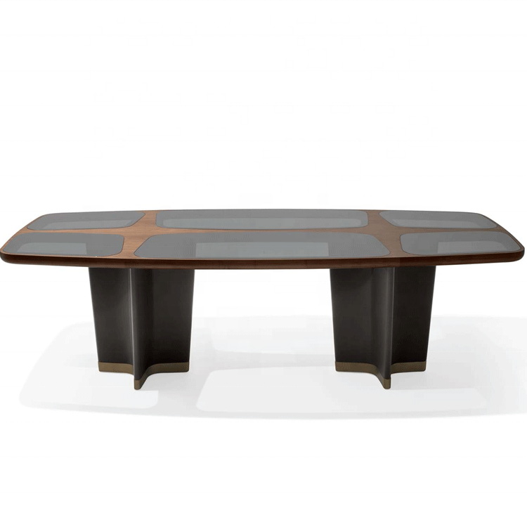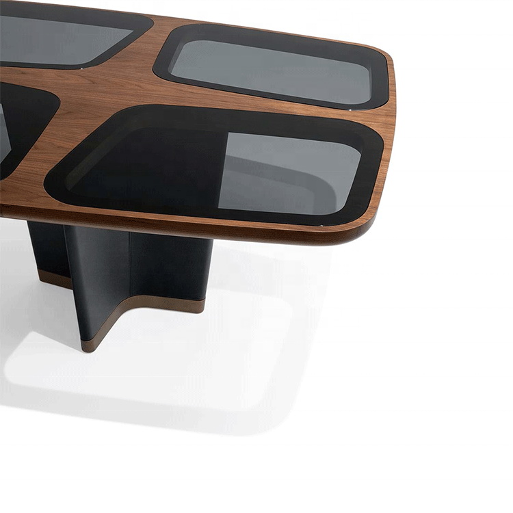Rectangular table in walnut solid wood and leather with the top all in wood or crystal glass or marble
