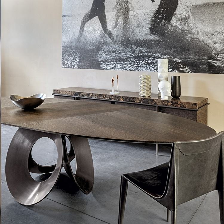 round or Oval -Shape Solid wood dining table circles marble restaurant table sample luxury villa hotel Negotiation table