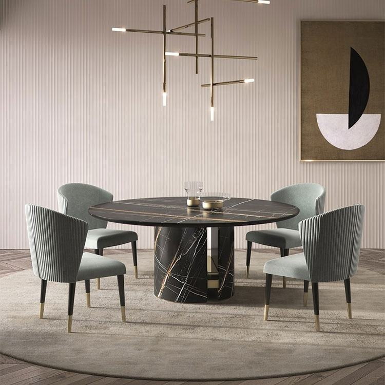 Black marble simple design idea dining table for 6 seater small space apartment restaurant modern contemporary style