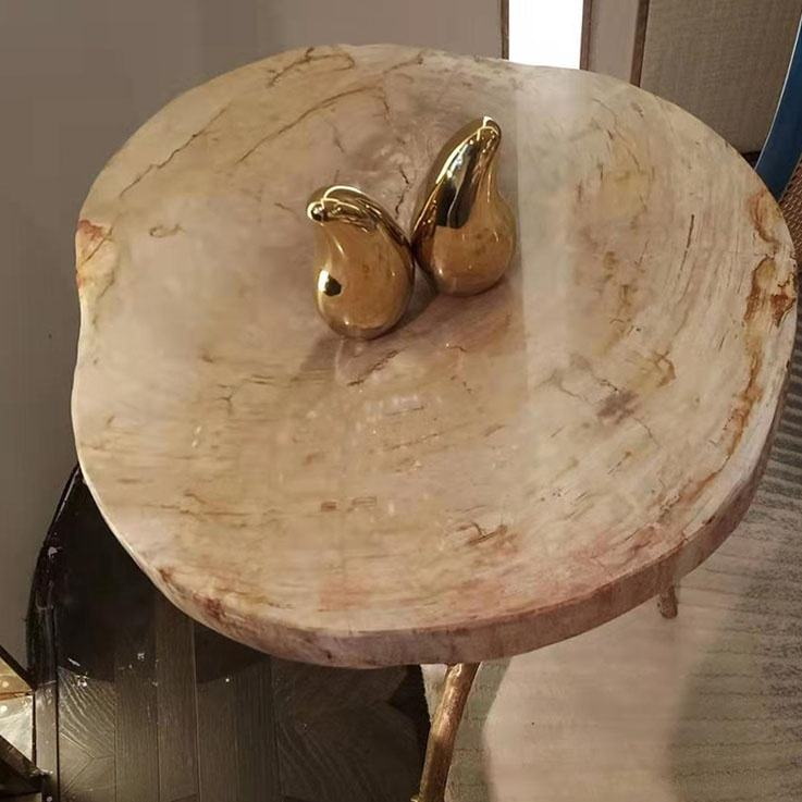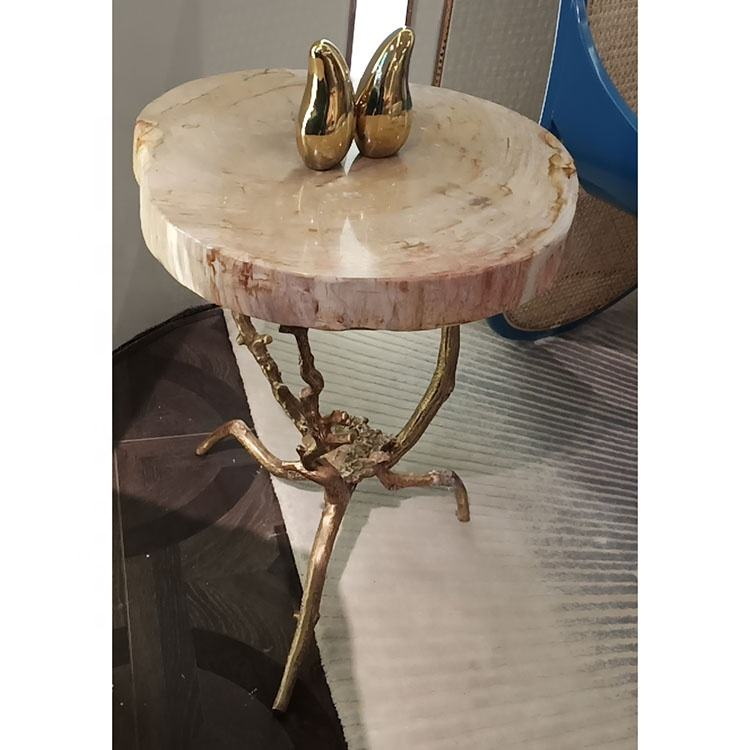 Antique design small tea table in cooper leg solid wood top Luxury living room furniture
