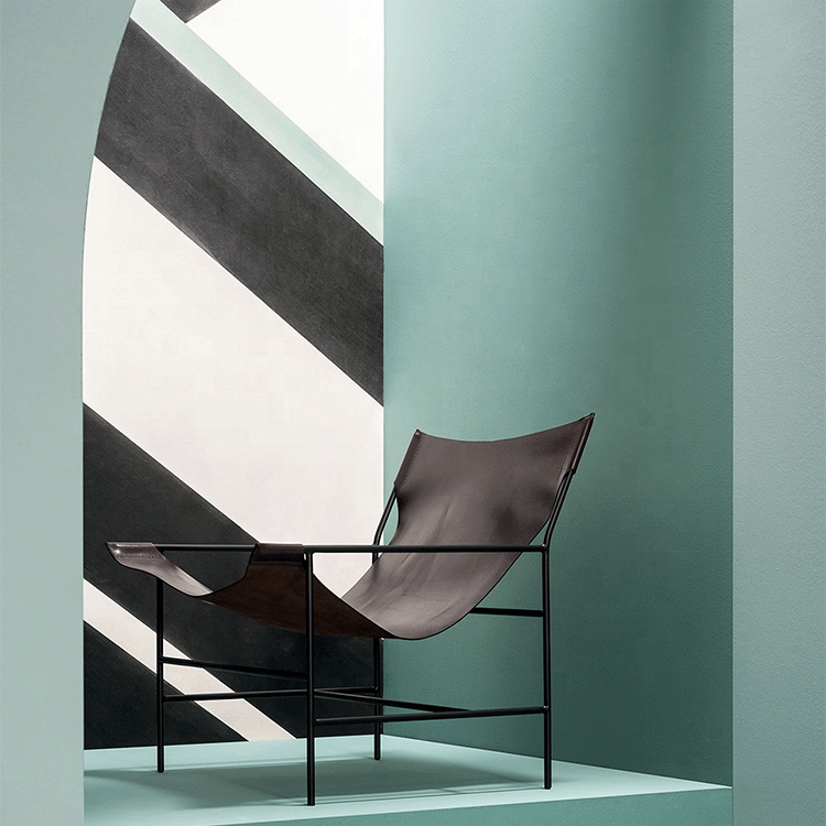 Simple design single chair in metal and genuine leather Italy style hot sale living room furniture leisure chairs