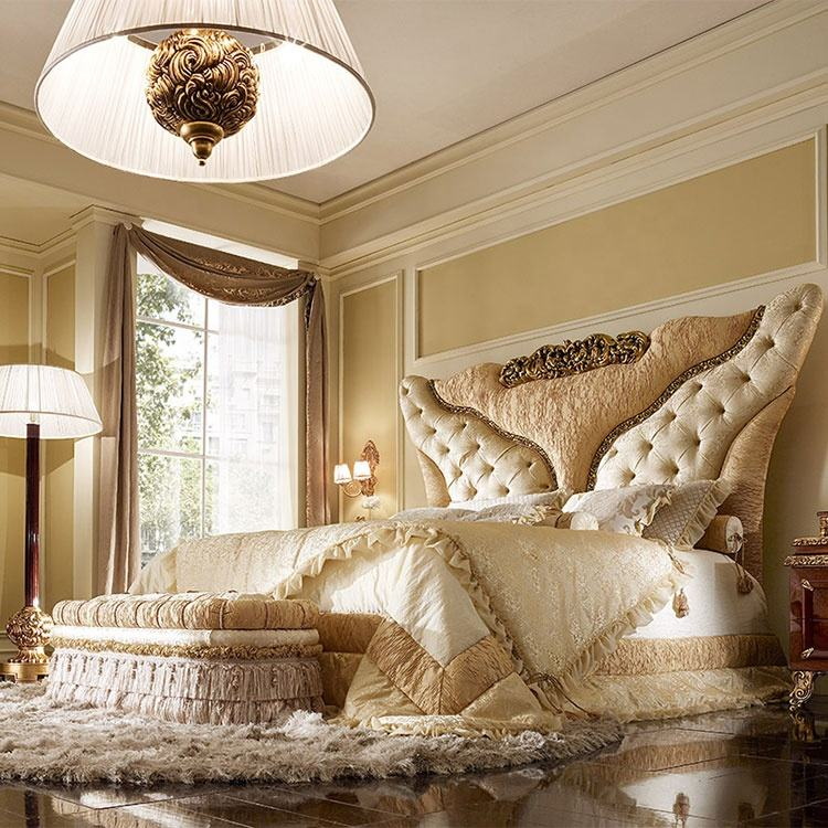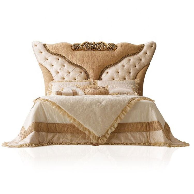 Royal luxury bedroom furniture princess bedroom furniture double bed with tufted headboard wooden european design