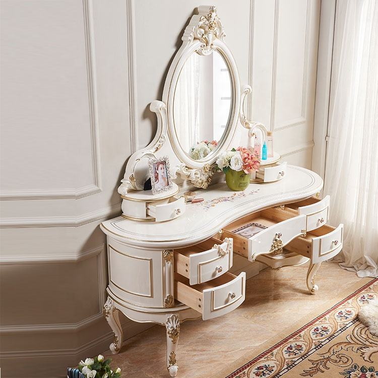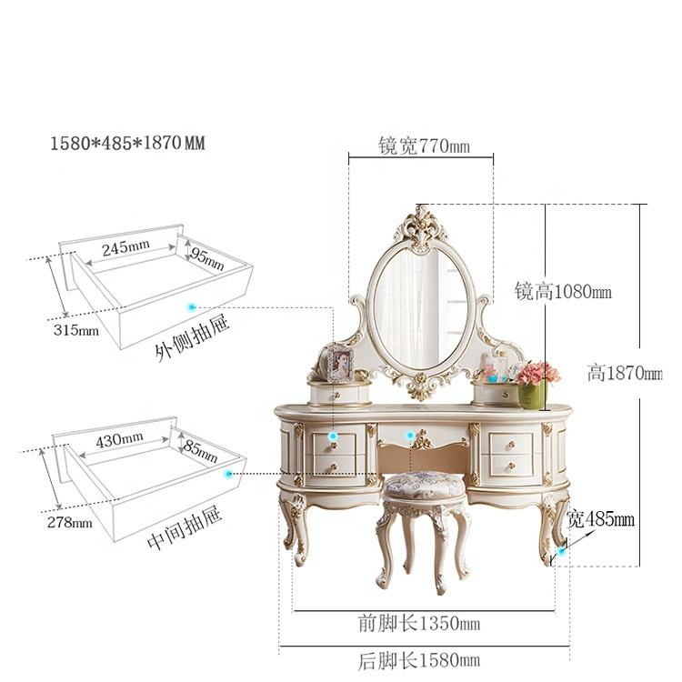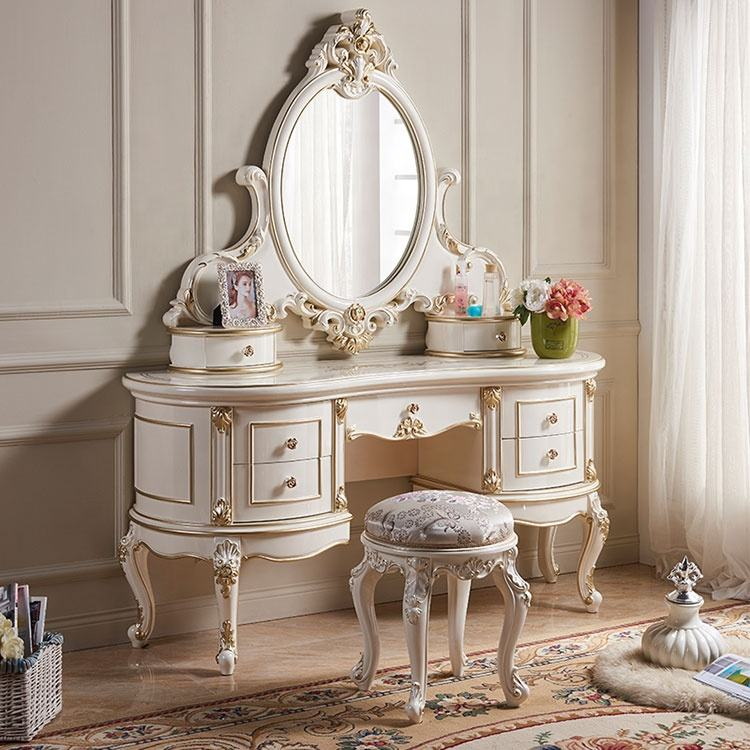 High-end European Style Makeup Vanity with Mirror, Dressing Table, Dresser Desk for Bedroom with mirror and stool