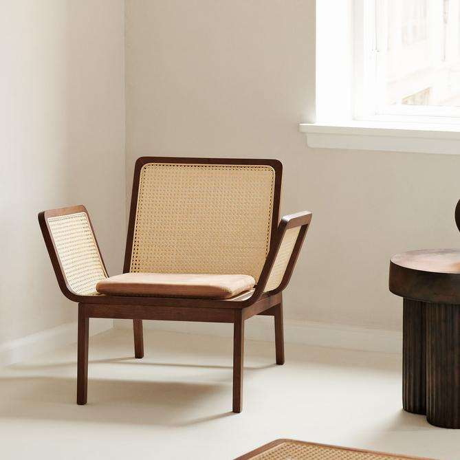 High quality 2021 Leisure chair Rattan and solid oak easy chair with armrests
