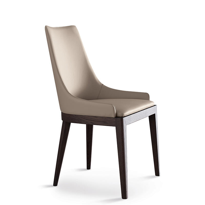 High back dining chair with beige white leather and black ash solid wood legs home furniture for dining room study room