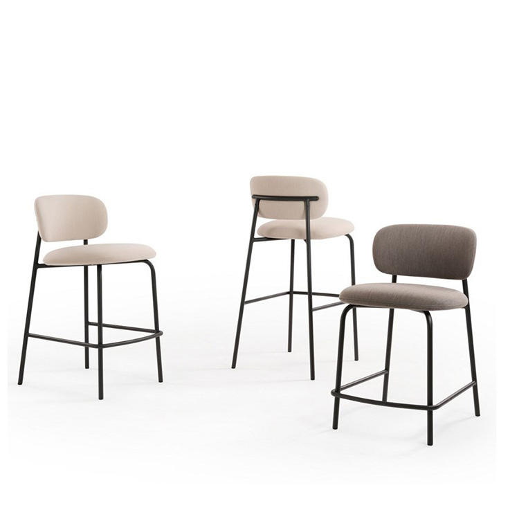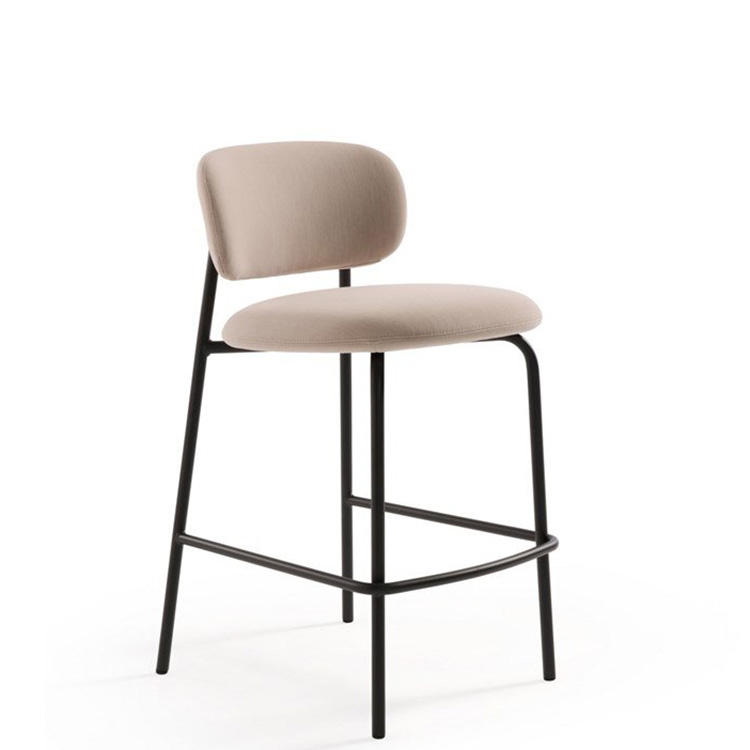 Beige white velvet Bar Chairs with black metal legs Ins Style Small home Bar stool Counter chairs Minimalist