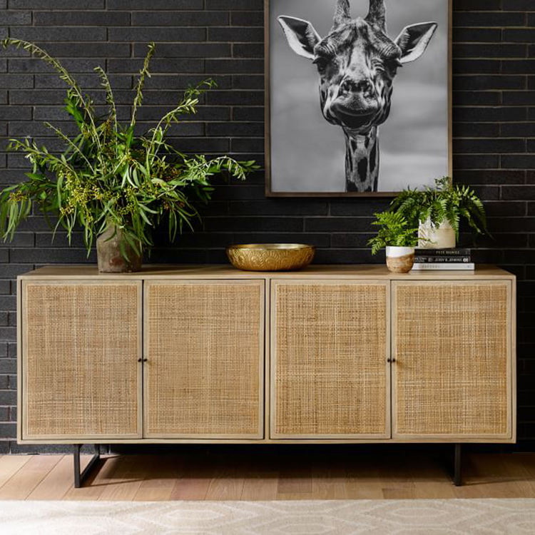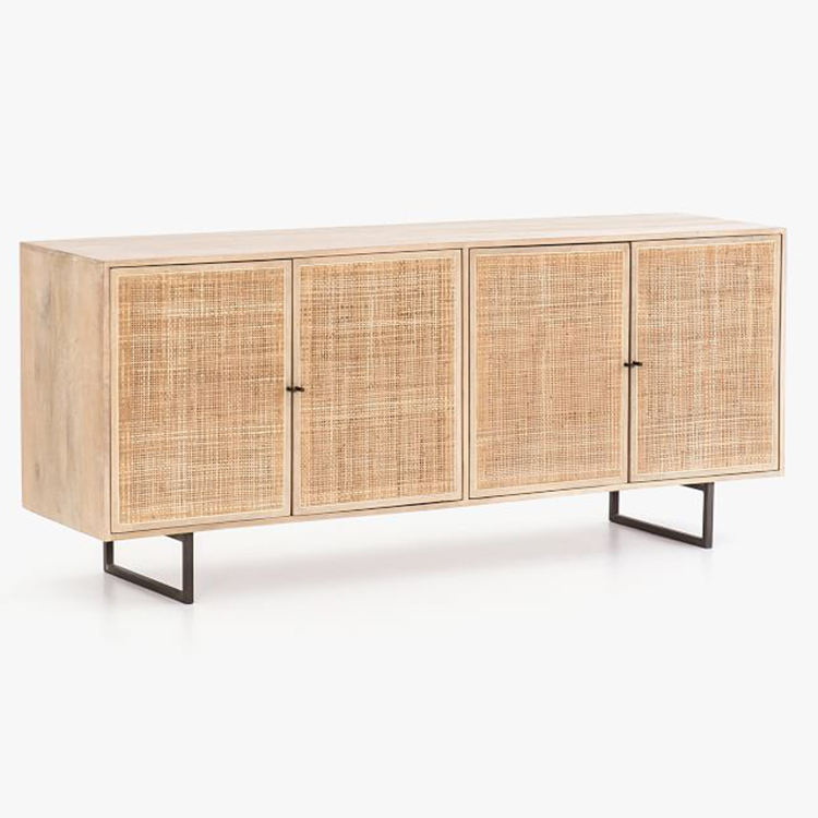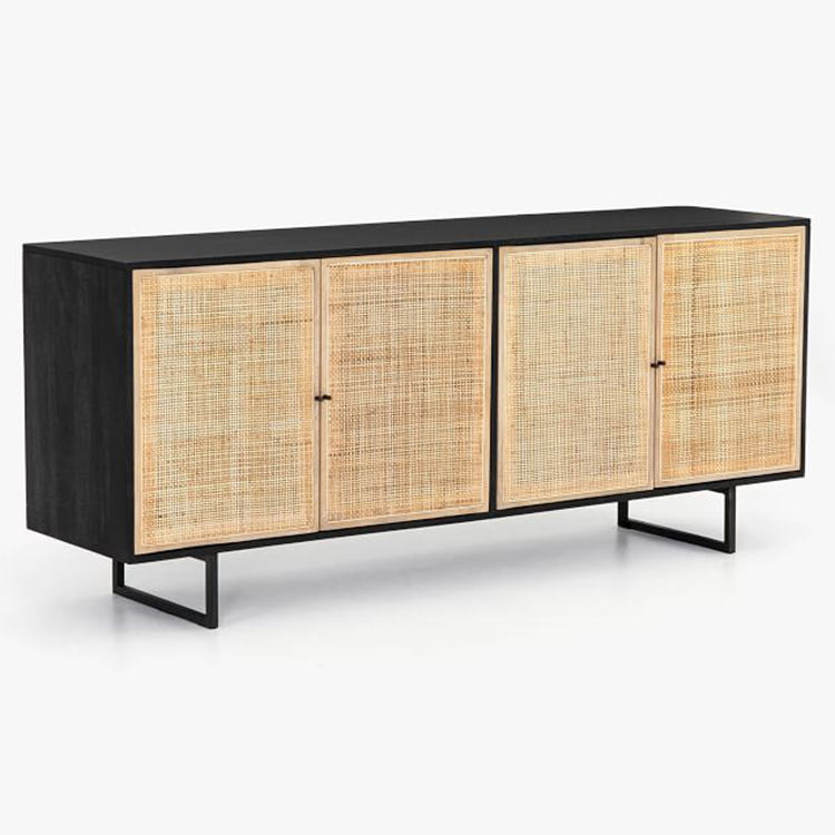 Cane Storage Cabinet With Black Metal Leg For Dining Room Living room Console Table Media Furniture