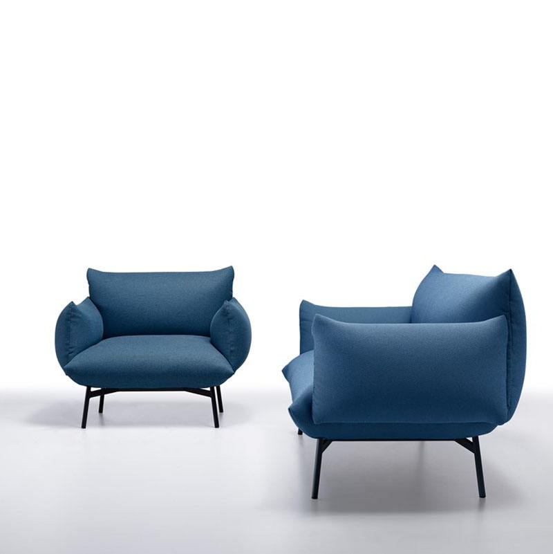 Gray Fabric Upholster Living room chairs with Black metal legs modern style blue fabric lounge chairs hotel bedroom furniture