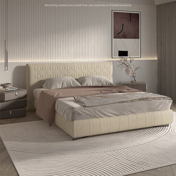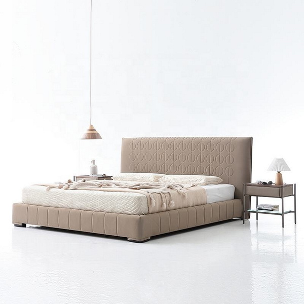 Nordic Furniture Upholstery Designer Beds Classic Double Italian King Size Soft Microfiber Leather Minimalist Bed Bedroom