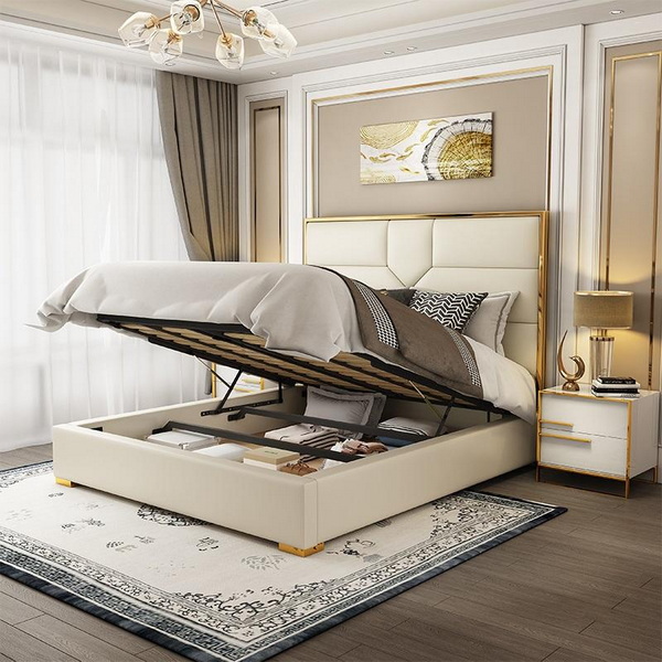 simple double cheap bed frame storage furniture designer beds modern king size leather slat storage bed