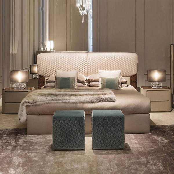 queen size luxury minimalist modern bed king size genuine leather upholstered beds