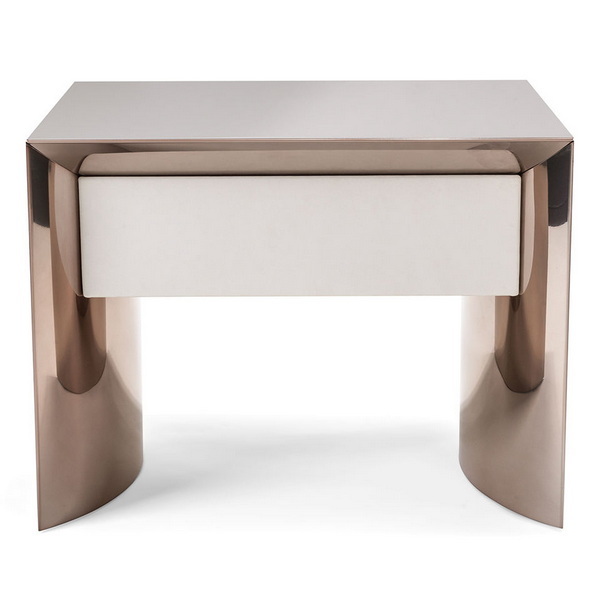 Stainless steel drawer night stand gloss white luxury modern bedside table for bedroom