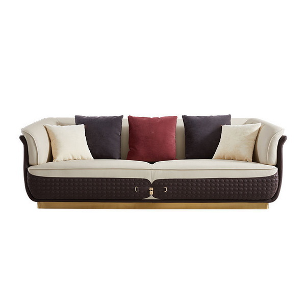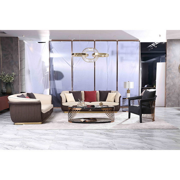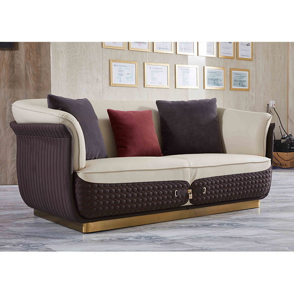 high quality mirror stainless steel base leather sofa set loungh couch luxury living room furniture