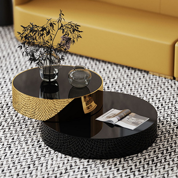 high end round coffee table double modern luxury stainless steel brass rotating black and gold coffee table