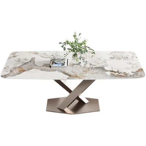 Italian stainless steel leg rock plate table modern sintered stone dining table