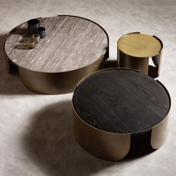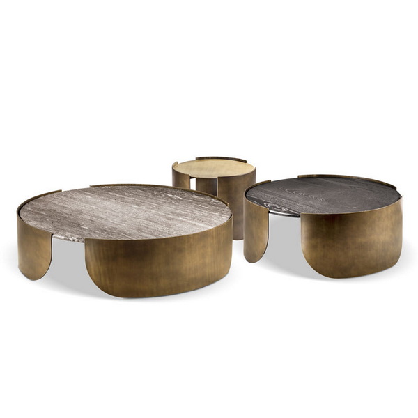 Postmodern Wooden Top Coffee Table Set High Quality Living Room Table Copper Italian Design Style Luxury Modern Coffee Table