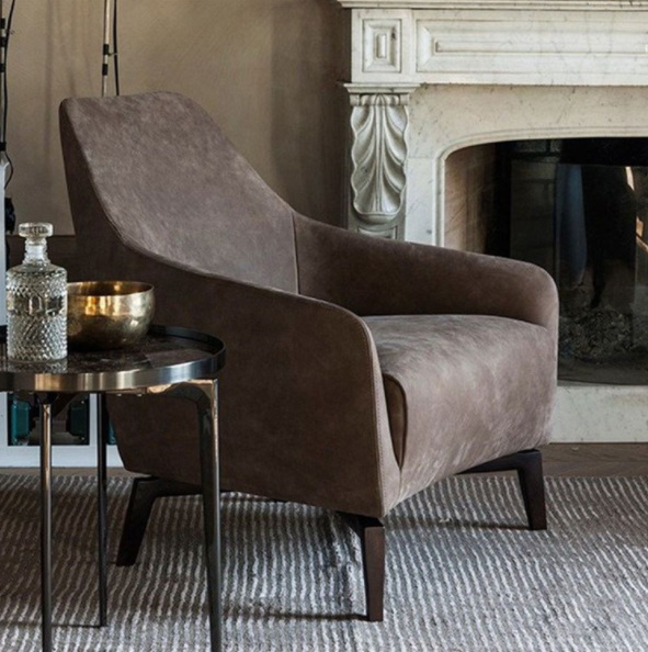 Transitional Mid Century Inspirations Brown Armchair in fabric or leather living room sofa chair