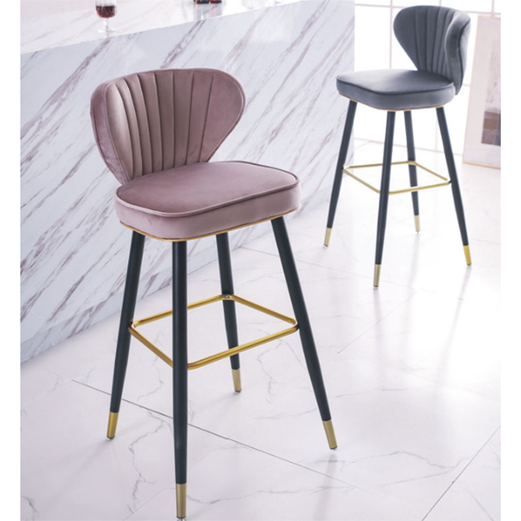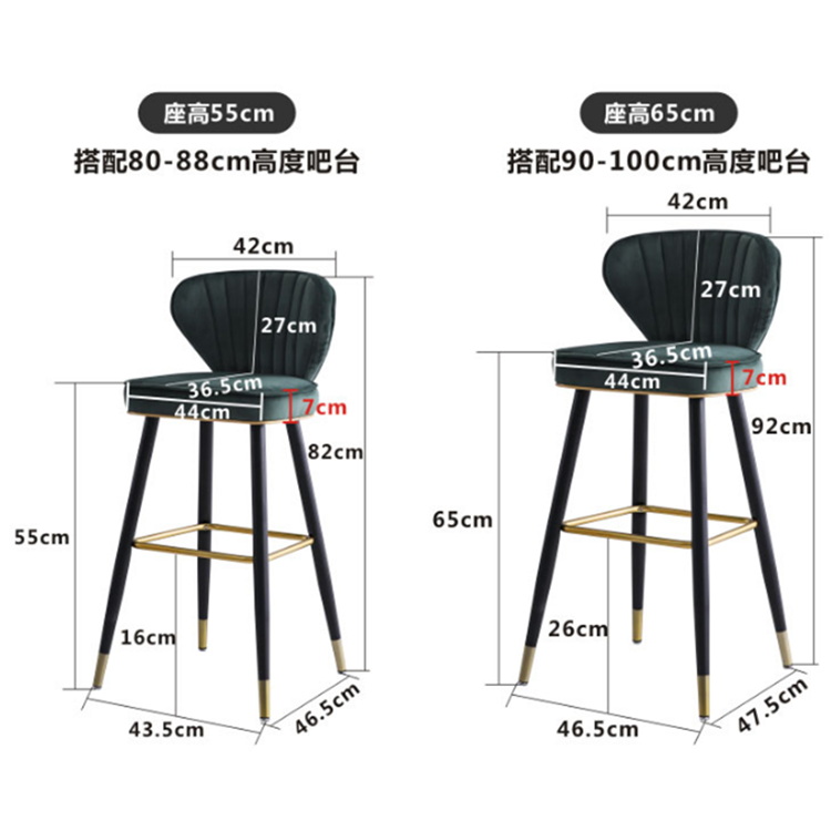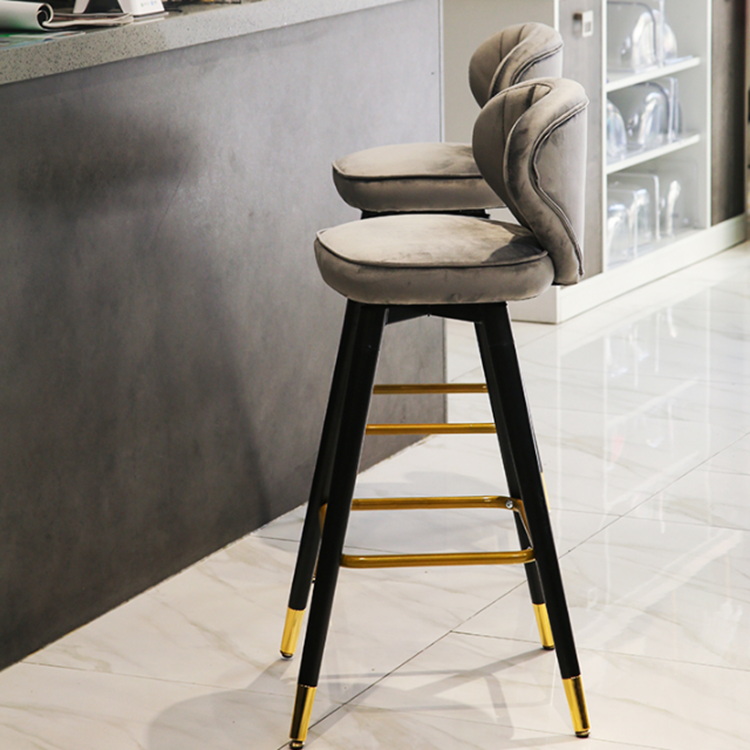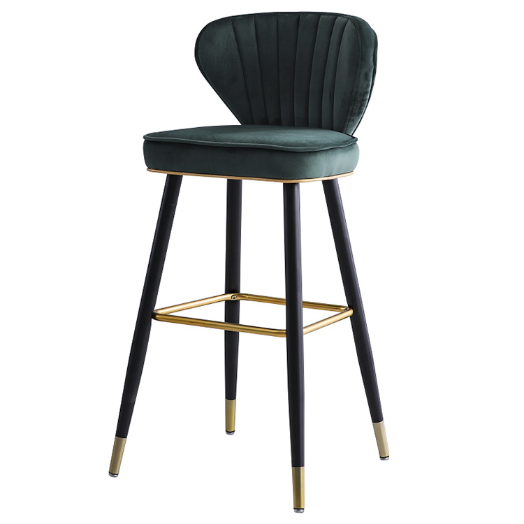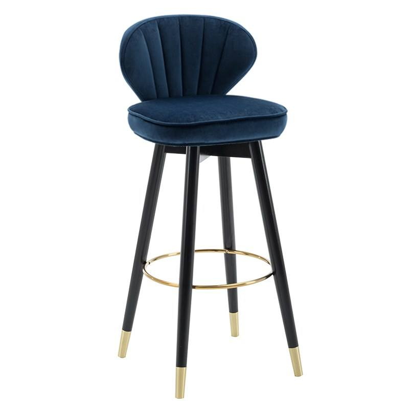Nordic Style Counter stool in Black solid wood leg upholstered vintage wood fabric bar chair